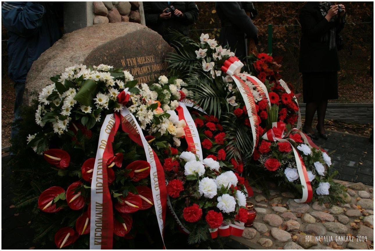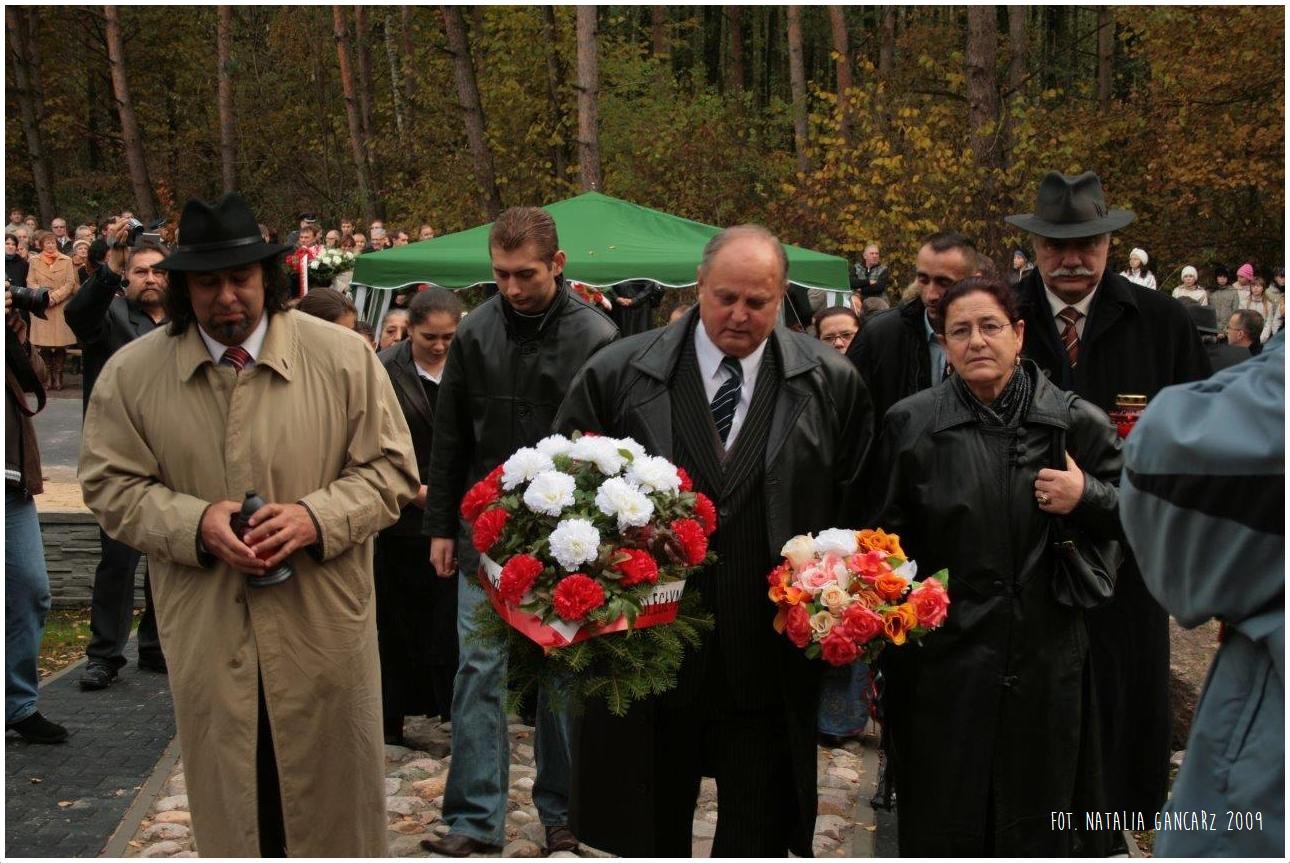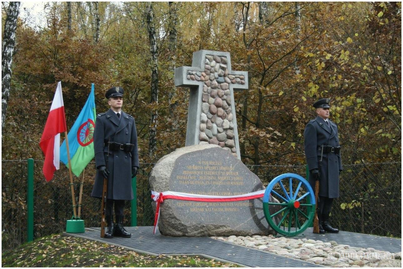 W tym miejscu / hitlerowscy oprawcy dokonali / zbiorowej egzekucji na Romach. / Zginęli oni – mężczyźni kobiety i dzieci / tylko dlatego, że urodzili sie Romami.