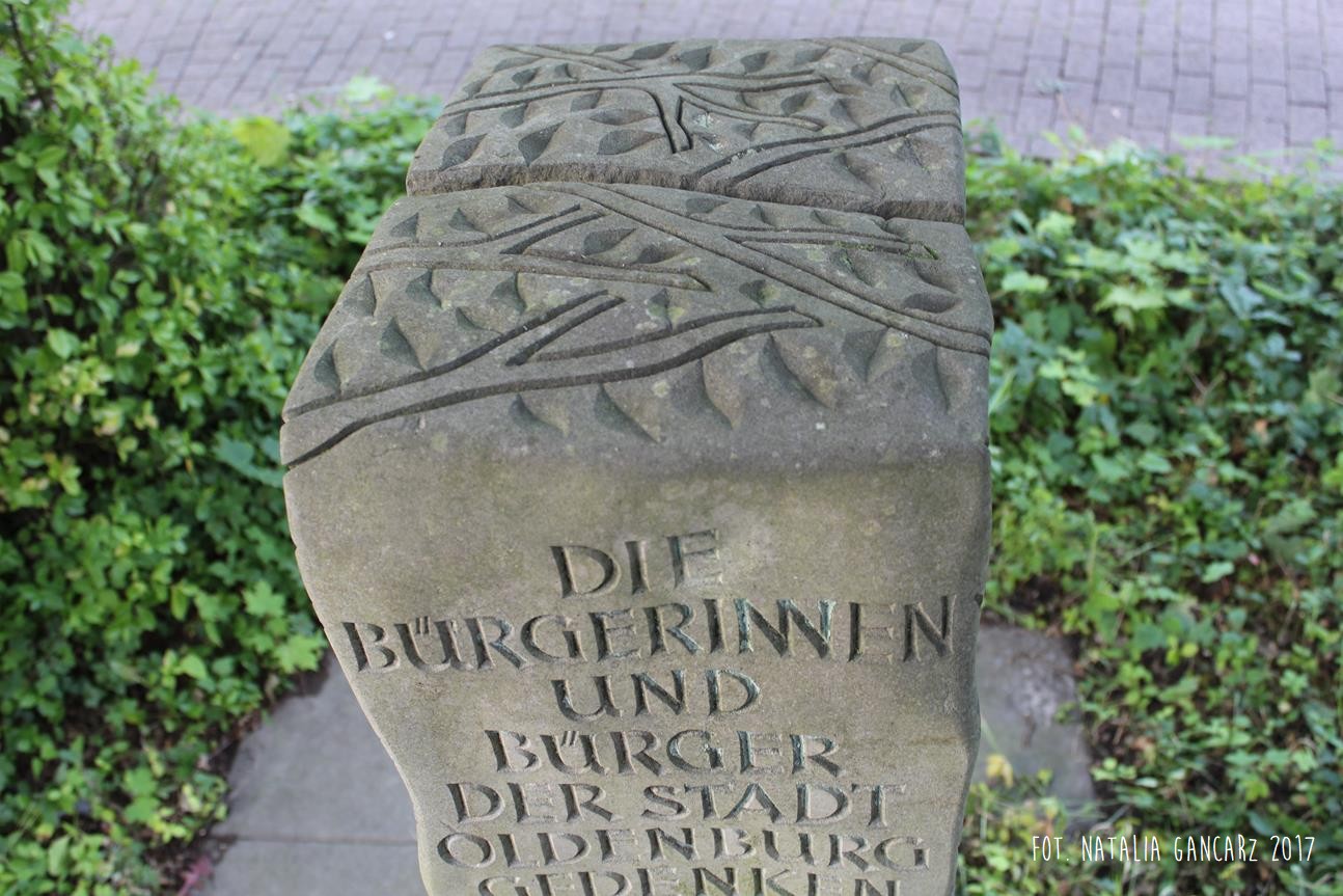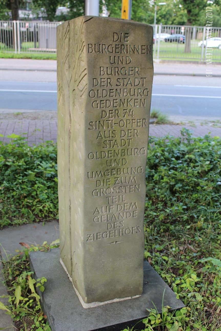 Mieszkanki i mieszkańcy miasta Oldenburg upamiętniają 74 ofiary – Sintów z Oldenburga i okolicy, których większość zamieszkiwała Ziegelhofes przy ulicy Friedhofsweg. Stąd zostali oni deportowani w latach 1938-45, w czasie Holokaustu narodowosocjalistycznego, do Auschwitz, Birkenau i do innych miejsc, gdzie zostali zamordowani.