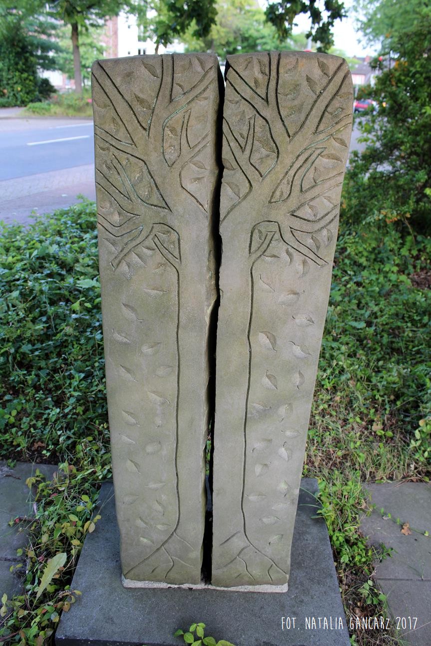 Pomnik tworzy kamienny prostopadłościan-słup o wysokości ok. 1,40 m. Szary piaskowiec jest w pęknięty wzdłuż całej wysokości słupa. Pęknięcie ma symbolizować próbę zniszczenia całego narodu cygańskiego. Pęknięcie przebiega wzdłuż boków, na których widoczny jest relief przedstawiający drzewo – szczelina jest więc pęknięciem w samym drzewie. Drzewo to traci liście. Siedemdziesiąt cztery opadające liście symbolizuje 74 ofiary zbrodni na Sintach z Oldenburga, ale fakt, że drzewo poza opadłymi posiada także liście zdrowe – ma świadczyć o tym, że lud-naród przetrwał nawet Samudaripen.