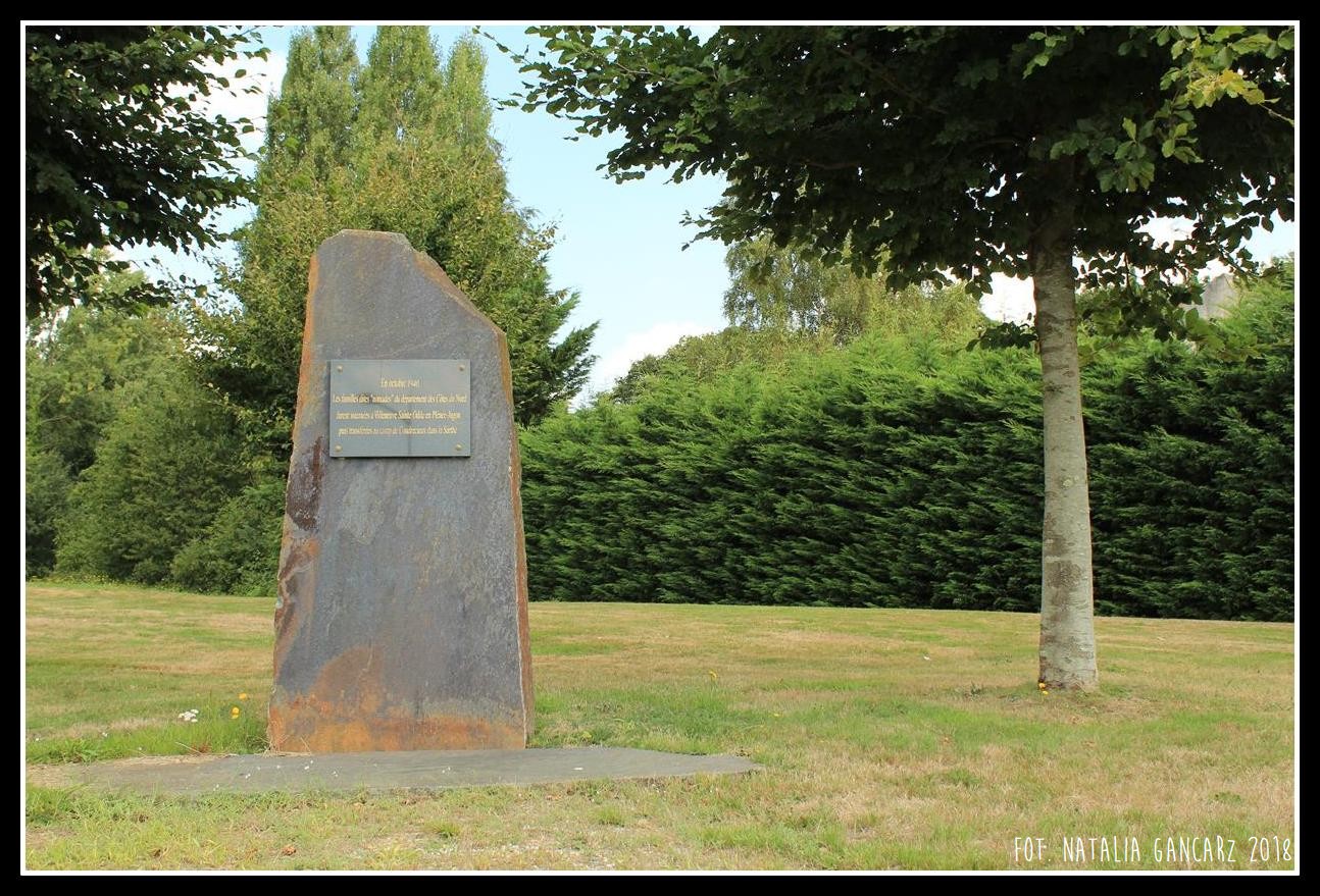Z przodu przykręcono granitową tablicę z wypiaskowanym, pozłoconym napisem w języku francuskim.