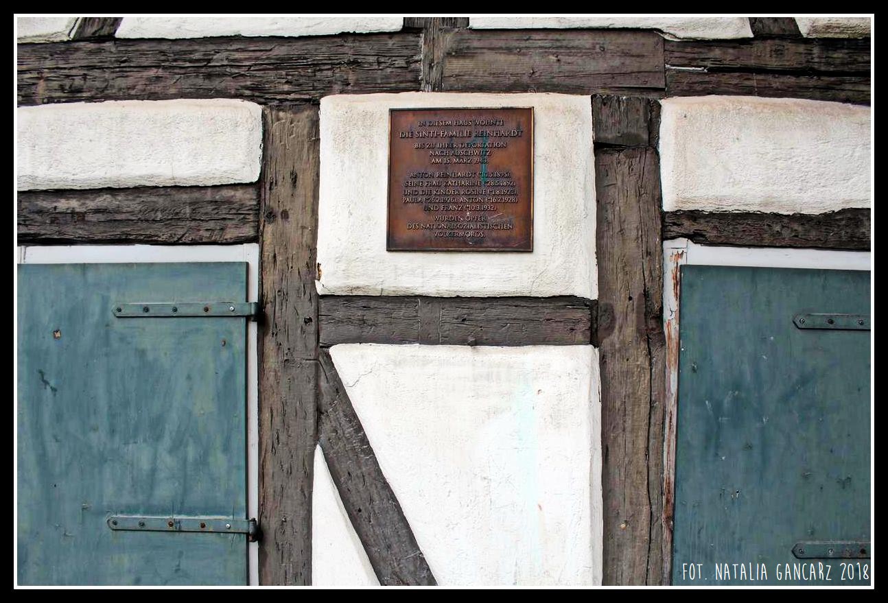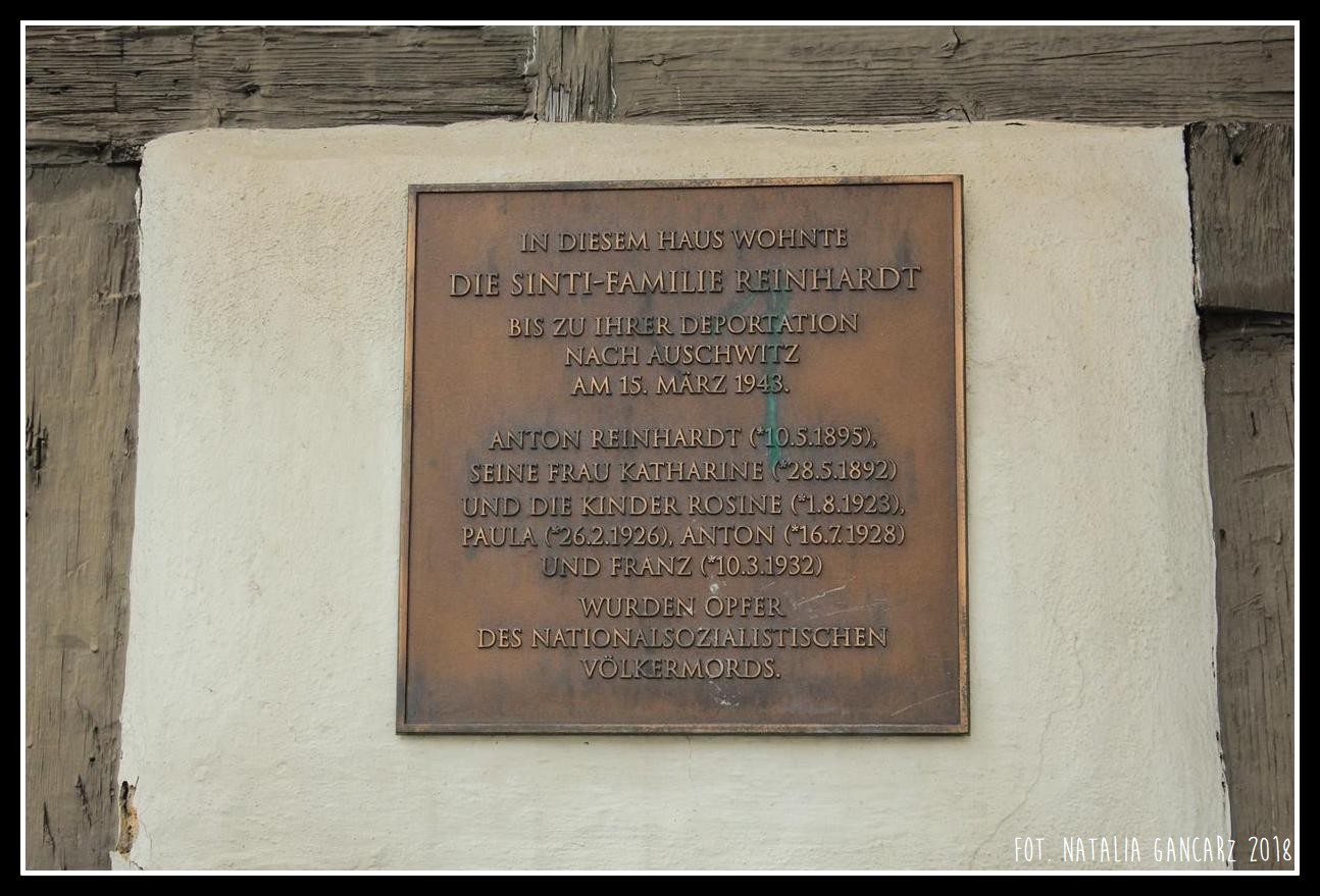 W tym domu, przed deportacją do Auschwitz 15.03.1943 r., mieszkała rodzina Sinto – Reinhardt (…). Stali się ofiarami ludobójstwa narodowosocjalistycznego.