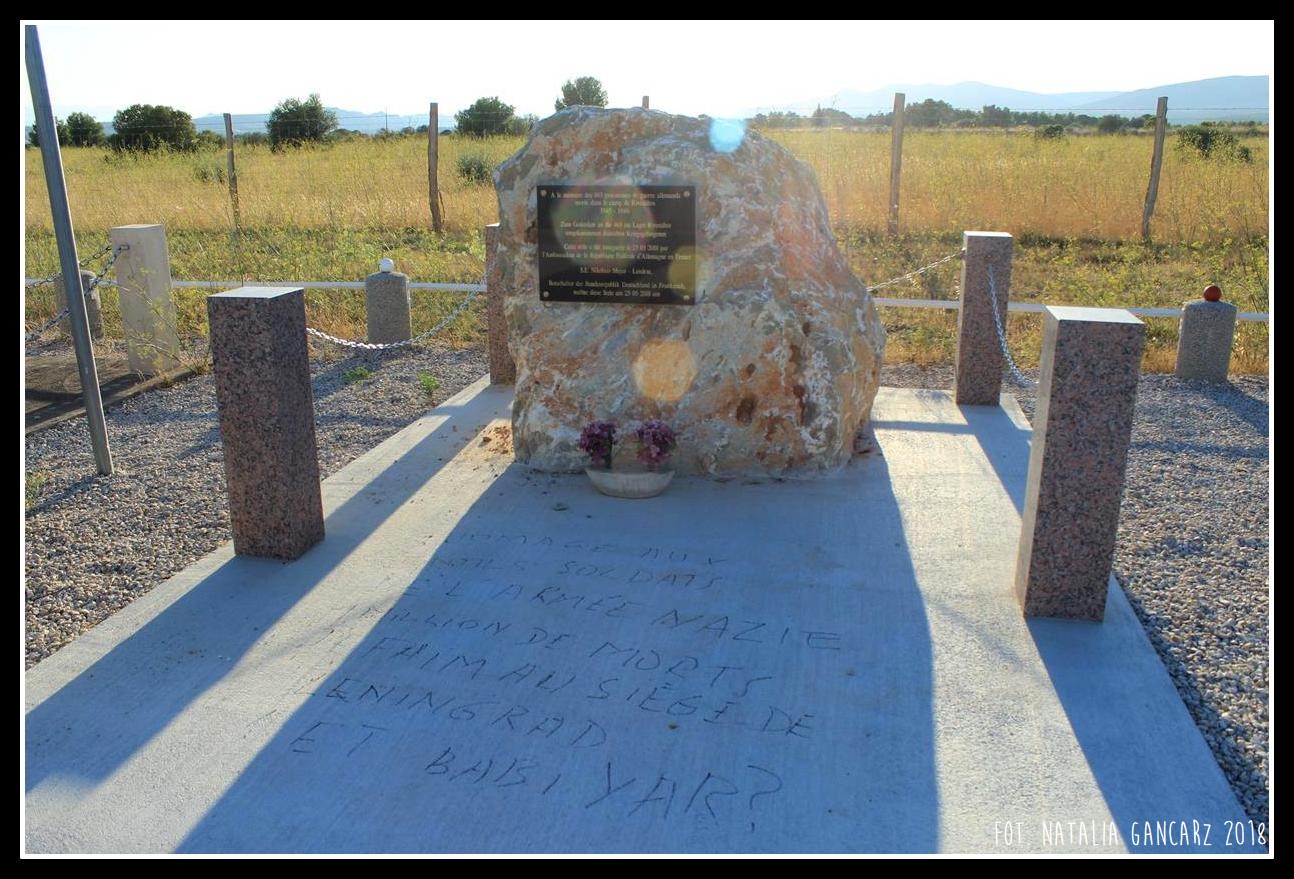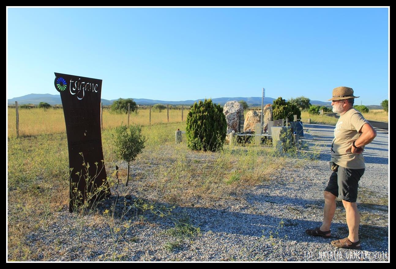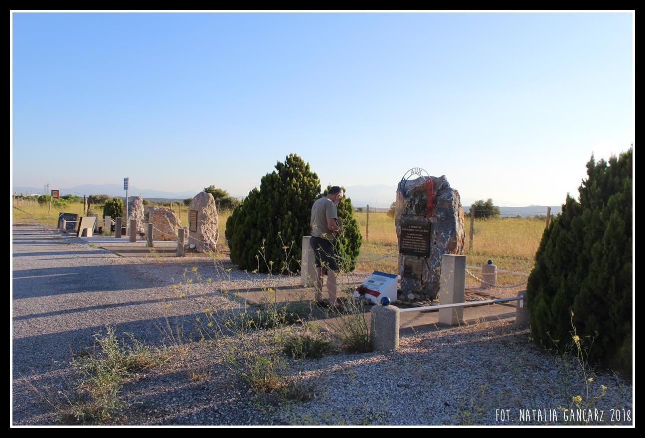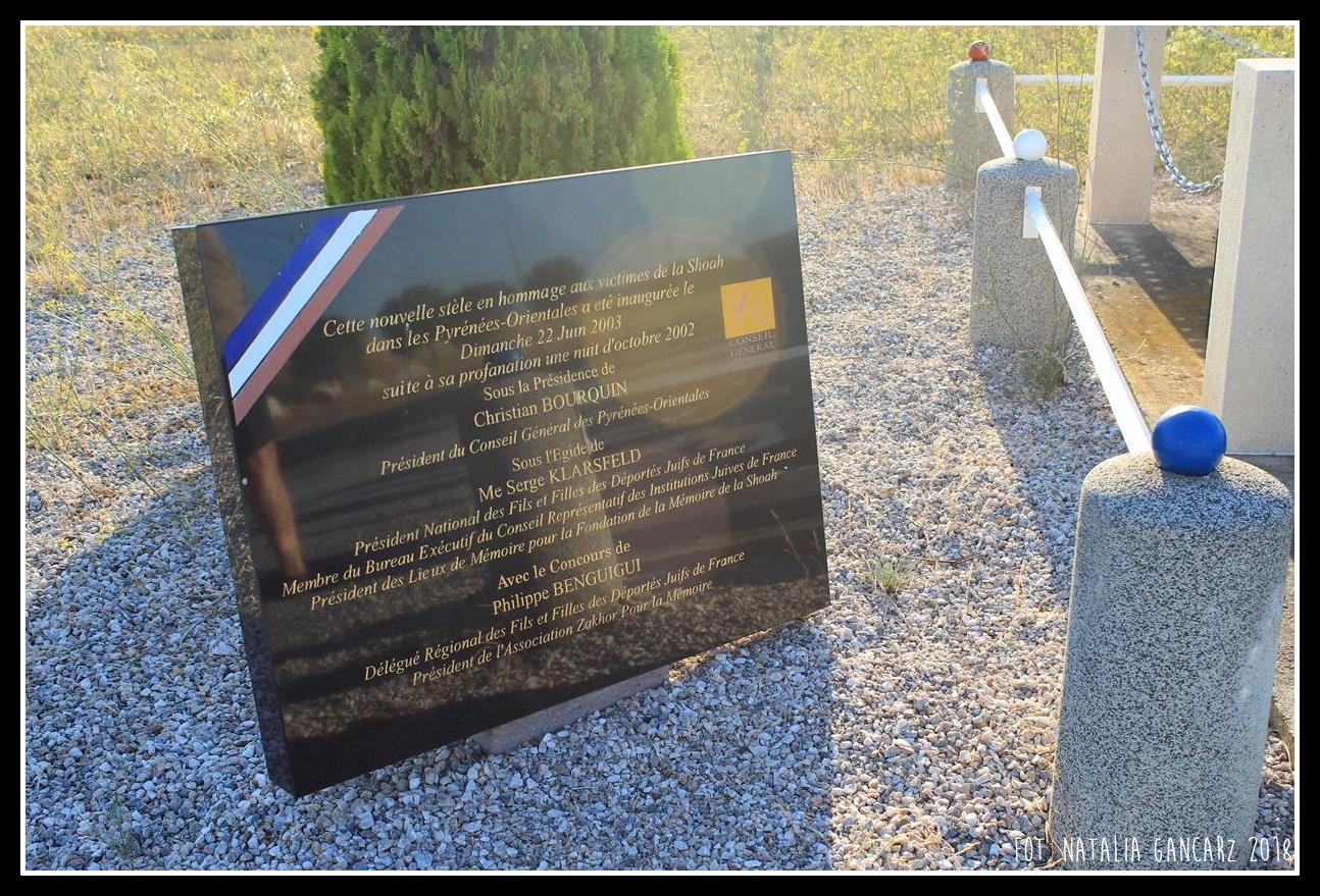 Przy drodze nr D5, w kompleksie pomników, upamiętniających internowanych w obozie Rivesaltes – drugi od lewej poświęcony jest Cyganom.