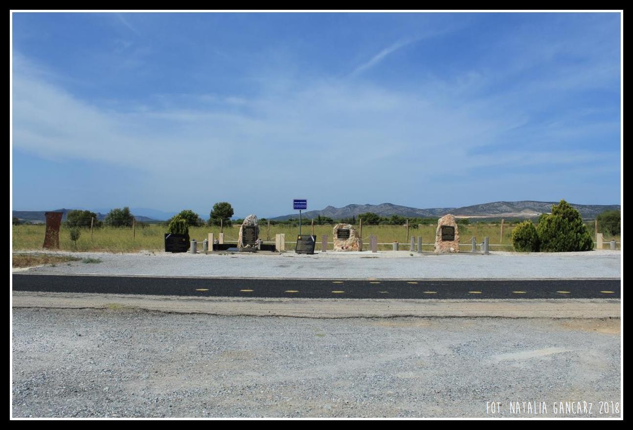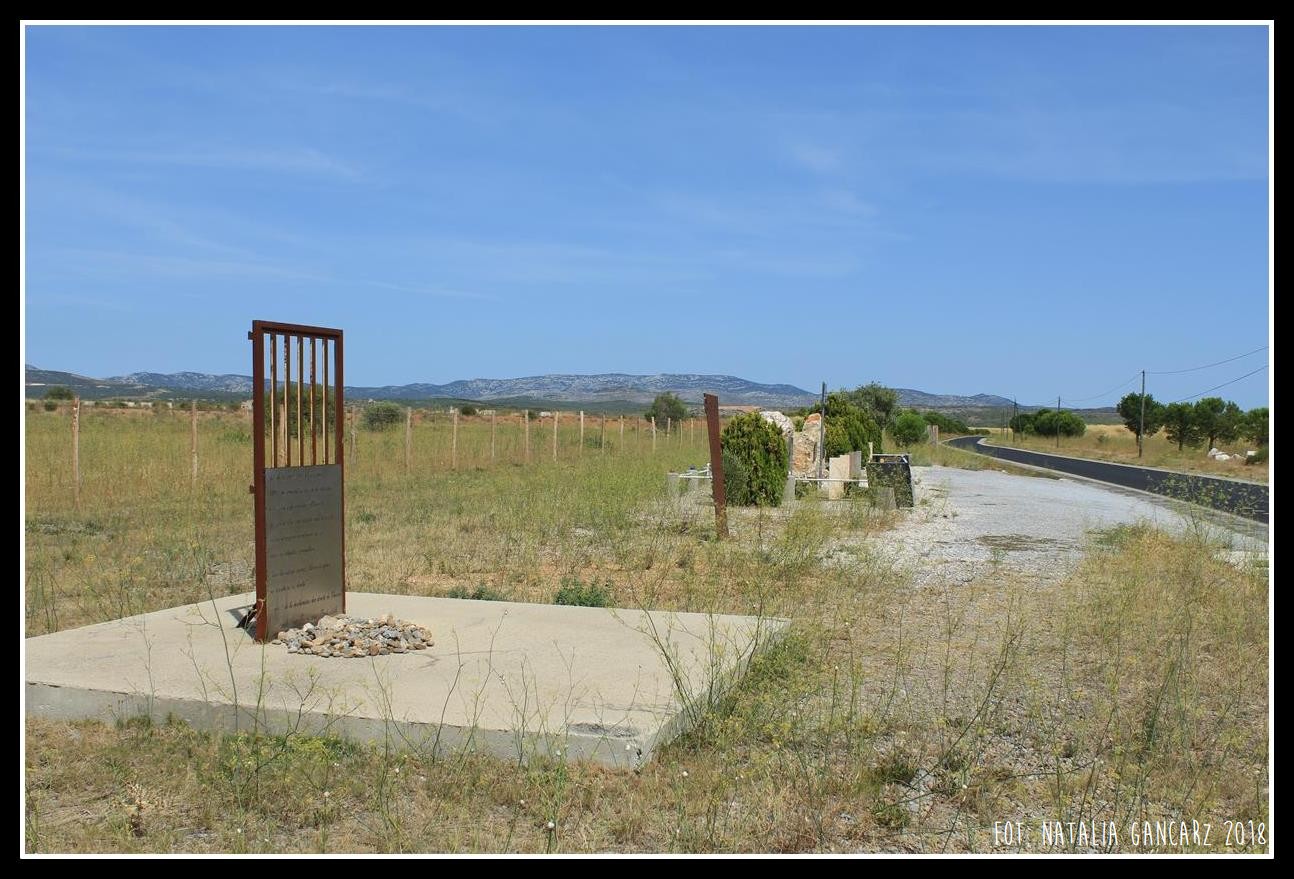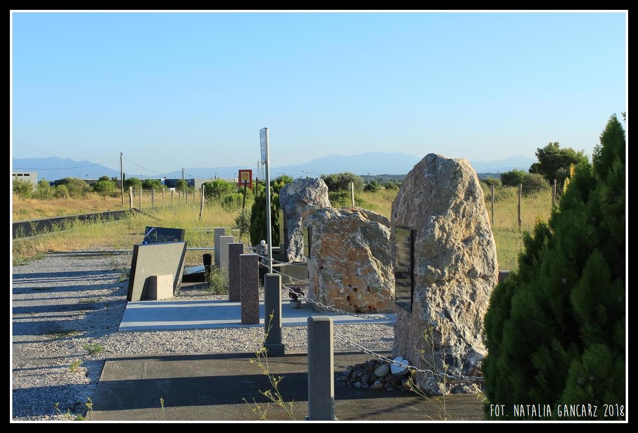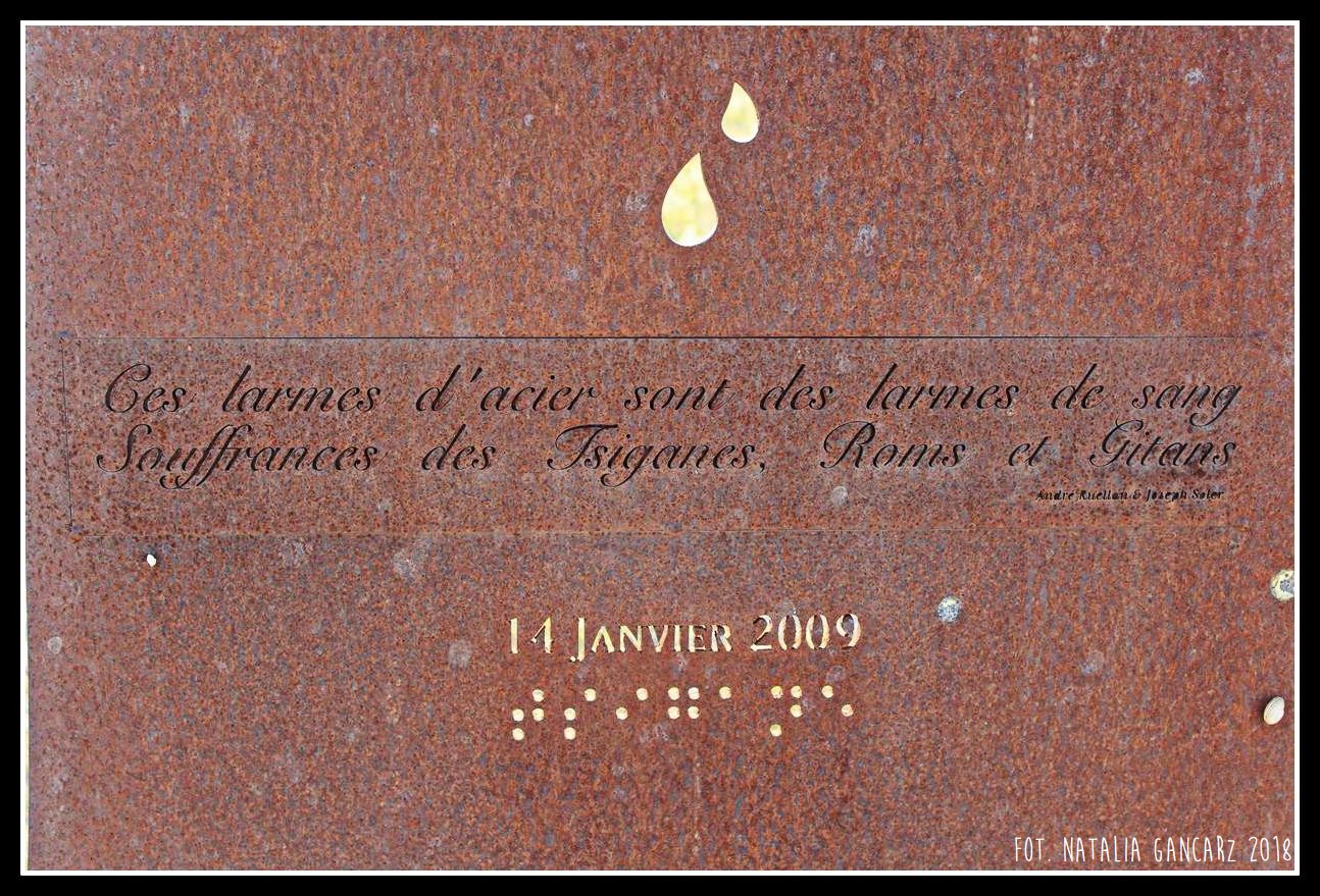 Te krople wycięte ze stali są kroplami krwi cierpiących tutaj Cyganów, Romów, Gitanów. (André Ruellan & Joseph Soler)