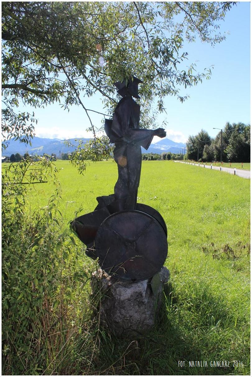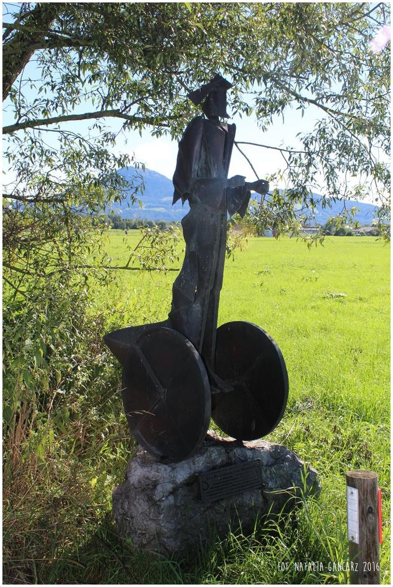Pomnik przedstawia postać ludzką, która stoi na dwukołowym wózku. Składa się ze zespawanych kawałków blachy. Pomnik symbolizuje dzień pracy w obozie Maxglan.