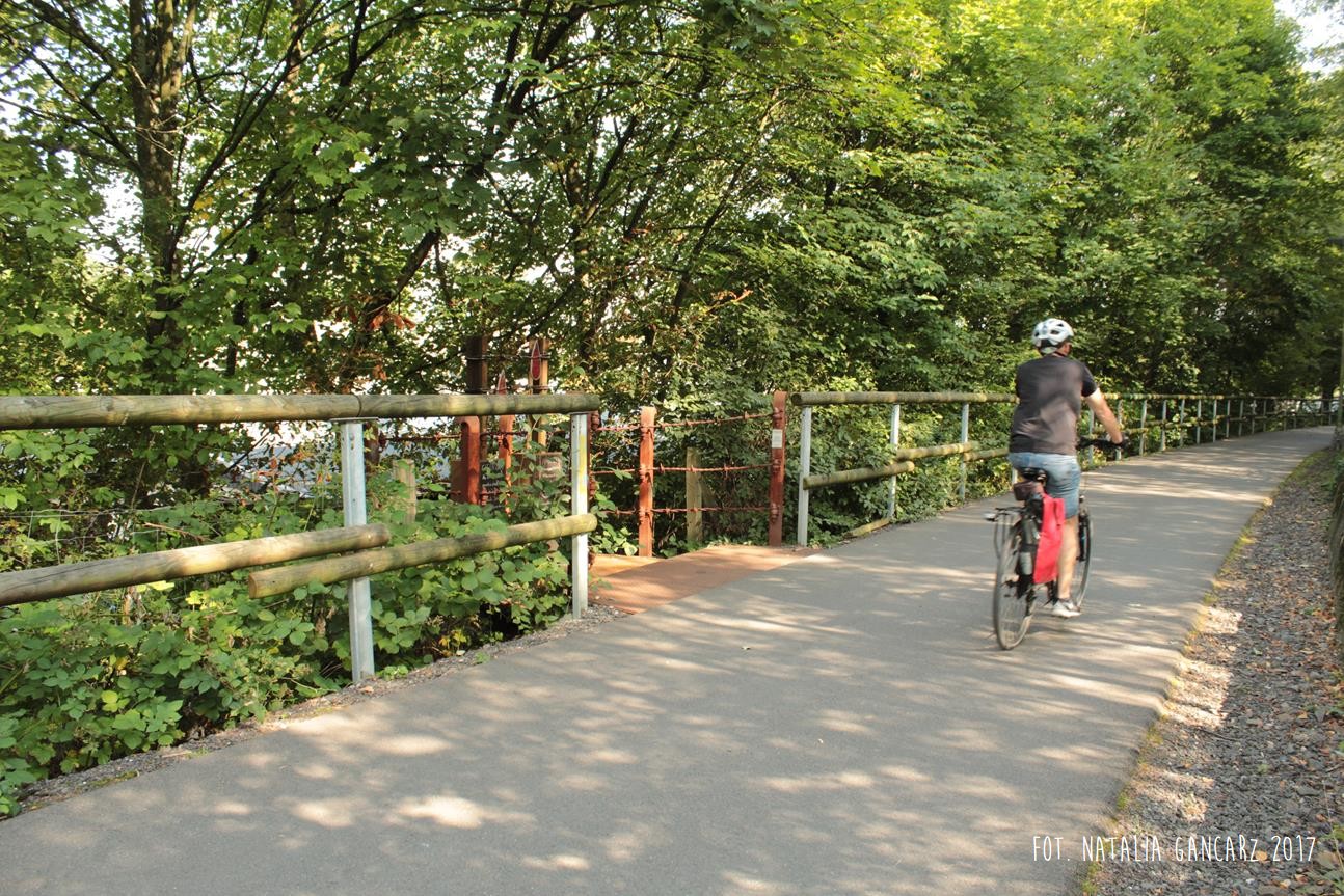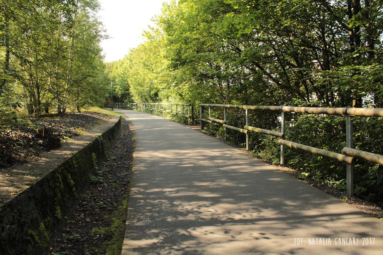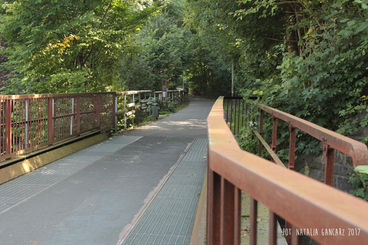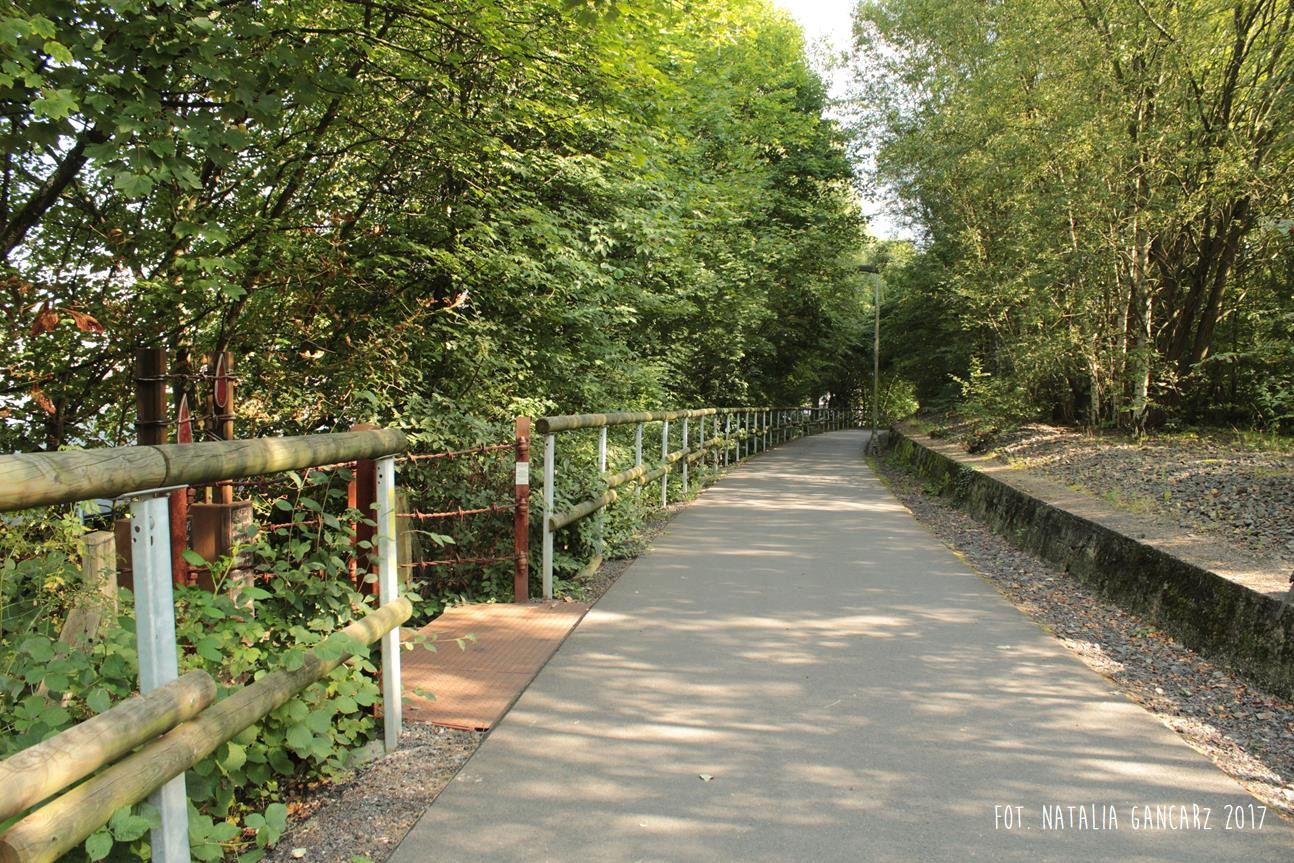 Obwodnica rowerowa Korkenziehertstrasse (dawna kolej) pomiędzy przebiegającymi pod spodem ulicami Klaubergerstrasse (stąd można wejść na górę i kierować się obwodnicą w stronę Cronenbergerstrasse)