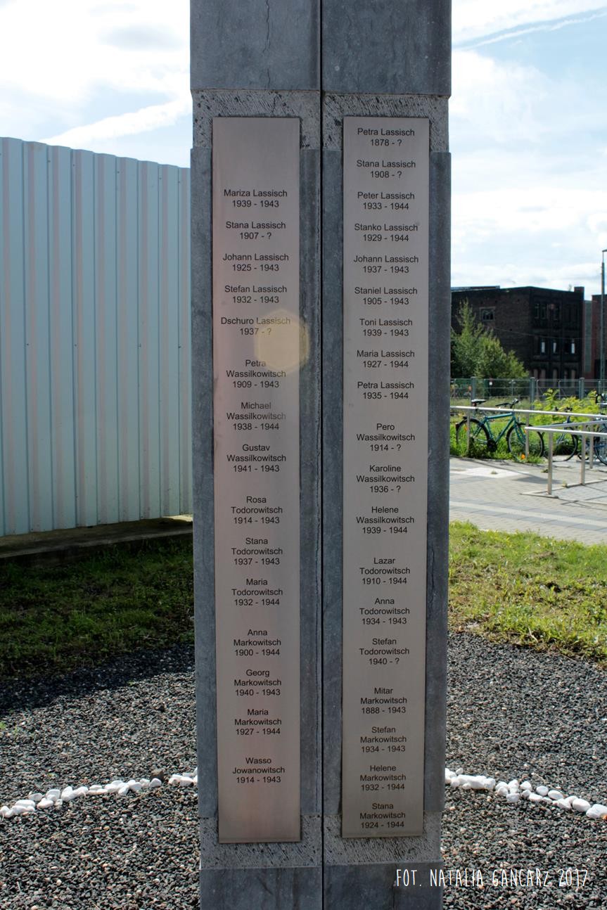Nowy pomnik ku pamięci deportowanych i zamordowanych rodzin romskich został wzniesiony w roku 2013. Jest to kamienna stela o wysokości ok. 2,70 m, wykonana przez rzeźbiarza w kamieniu, André Hennekena ze Stolberg-Breinig.