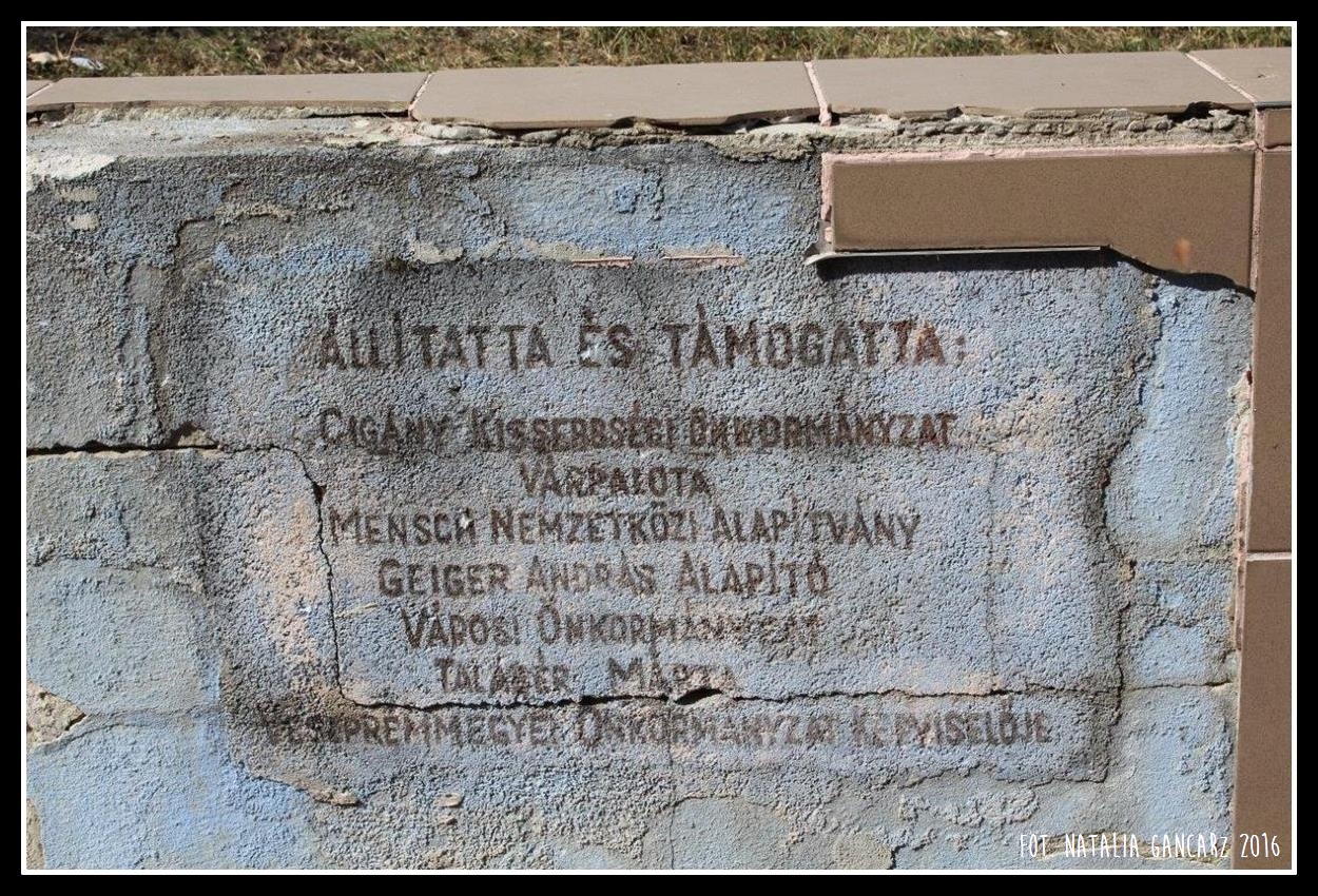(Wzniesiony i wspierany przez: [wymienione organizacje, m.in.] Stowarzyszenie Mniejszości Cygańskiej w Várpalota, Międzynarodowa Fundacja Mensch)