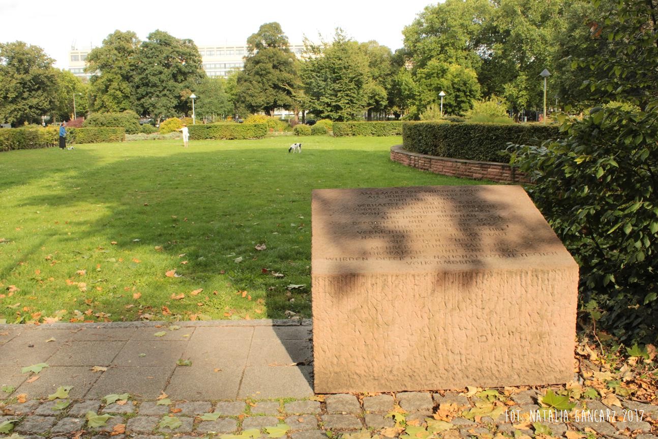 8 marca 1943 r. ponad stu Romów i Sintów z Wiesbaden zostało aresztowanych i zebranych w tym miejscu. Stąd zostali przeprowadzeni na dworzec kolejowy, a z niego do Auschwitz-Birkenau. Tylko około połowa z nich przeżyła obóz i wróciła do rodzinnego miasta po 1945 r. Kilkaset tysięcy europejskich Romów i Sintów zostało śmiertelnymi ofiarami narodowego socjalizmu.