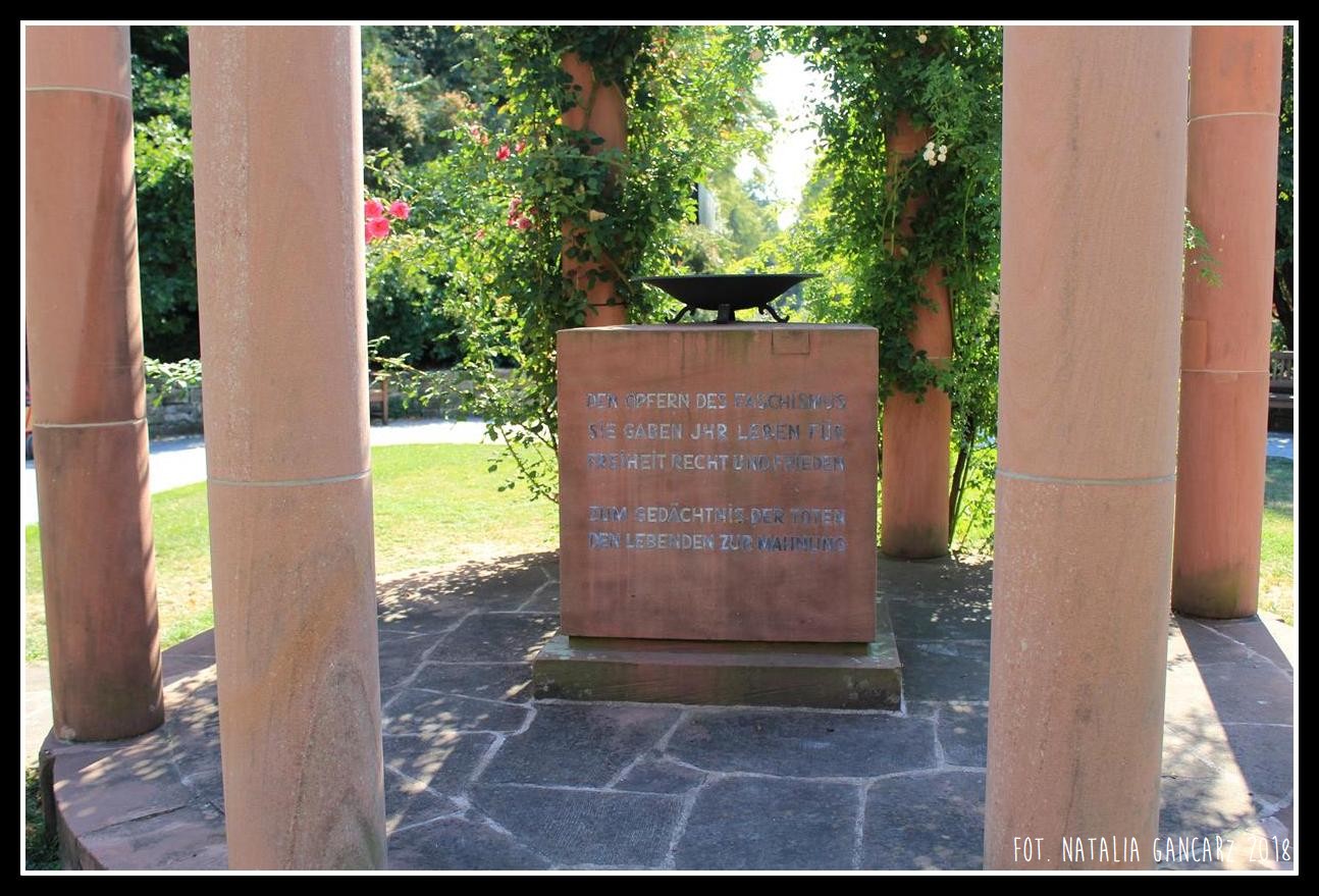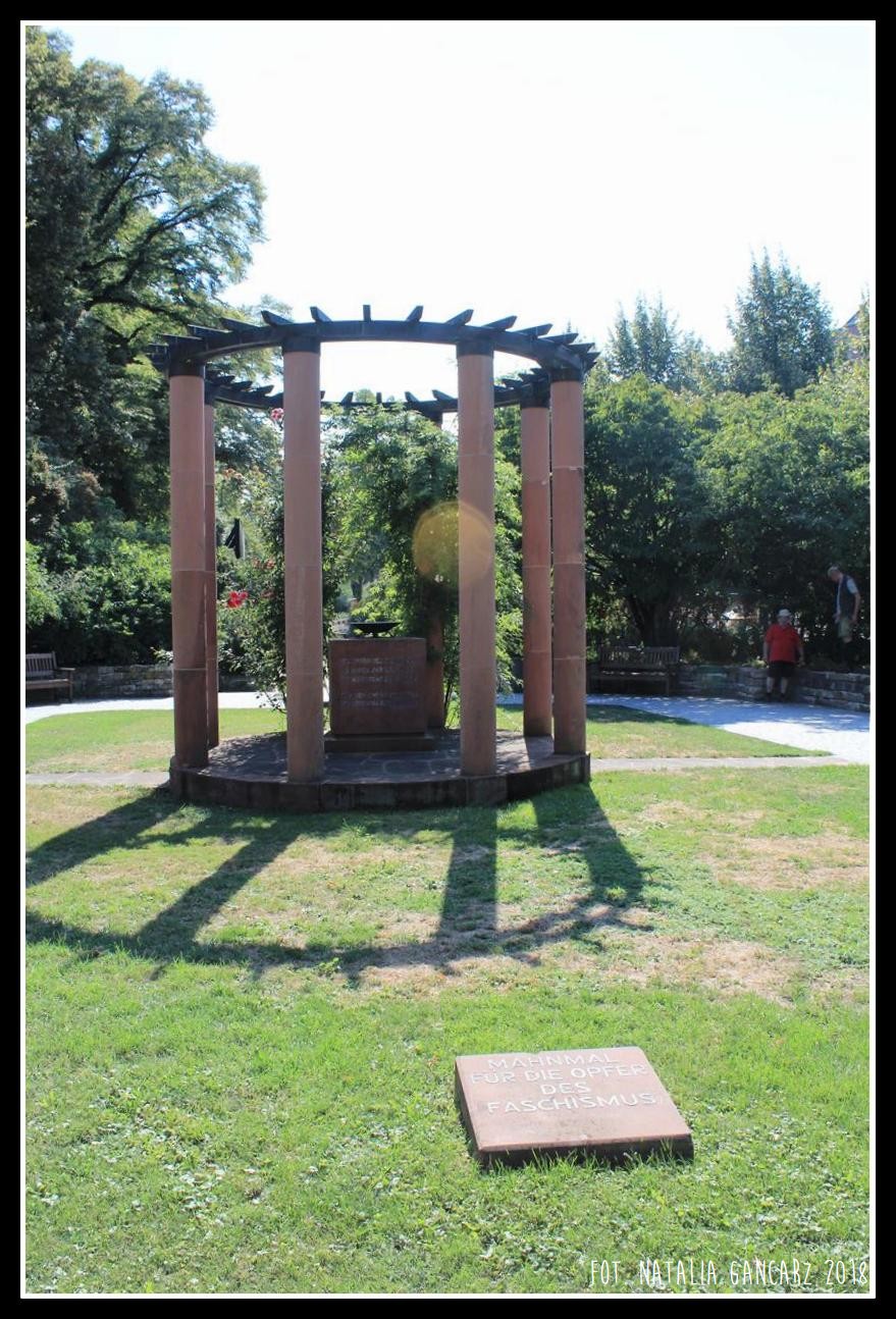 W Lutherpark, blisko słynnej katedry wormackiej, znajduje się szczególne, wydzielone miejsce, nazwane Placem Otto Welsa (słynnego polityka Socjaldemokratycznej Partii Niemiec (SPD), któremu narodowi socjaliści odebrali obywatelstwo niemieckie w 1933 r.), na którym stoi Mahnmal für die Opfer des Faschismus (‘Pomnik Ofiar Faszyzmu’). Jest to budowla przywodząca na myśl studnię: kamienny sześcian z napisami i osadzonym na wierzchu żeliwnym zniczem – wewnątrz konstrukcji oraz ustawionymi koliście wokół sześcianu kolumnami, zwieńczonymi szczytem żeliwnym, przypominającym koło zębate lub koronę cierniową. Napis, upamiętniający ofiary ludobójstwa, znajduje się od frontu pomnika, natomiast tablica, poświęcona pamięci niemieckich Sintów – mieszkańców Wormacji – znajduje się na tylnej ścianie sześcianu.