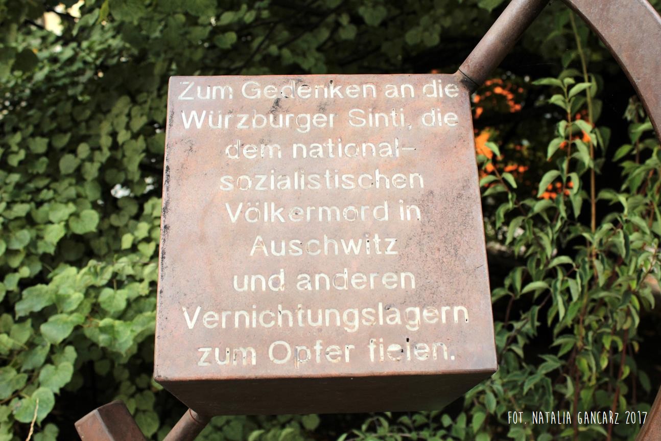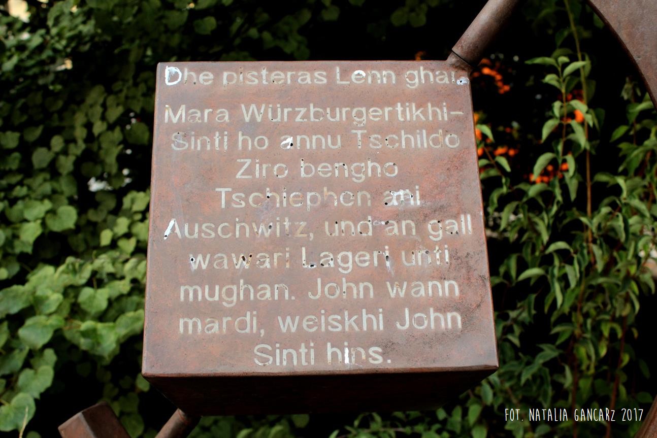 ‘Dla upamiętnienia Sintów z Würzburga, będących ofiarami narodowo socjalistycznego ludobójstwa w Auschwitz i innych obozach zagłady.’