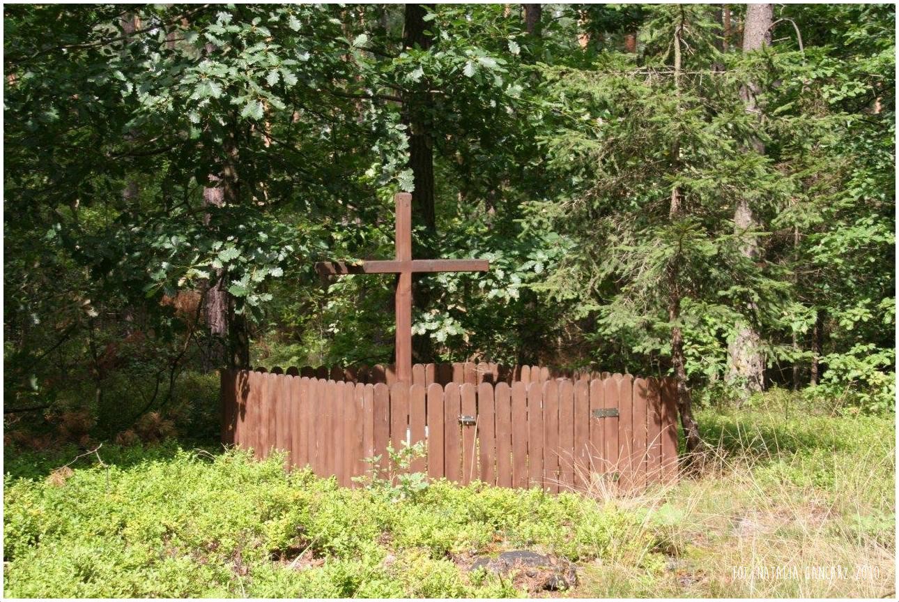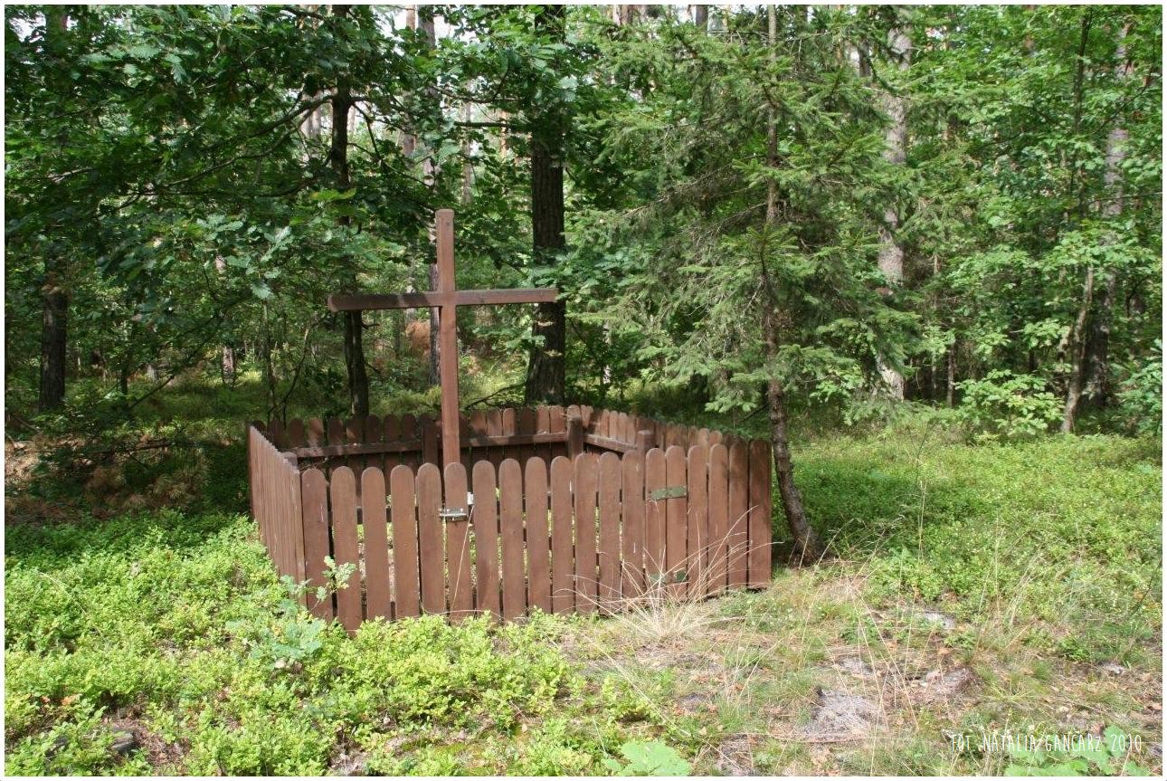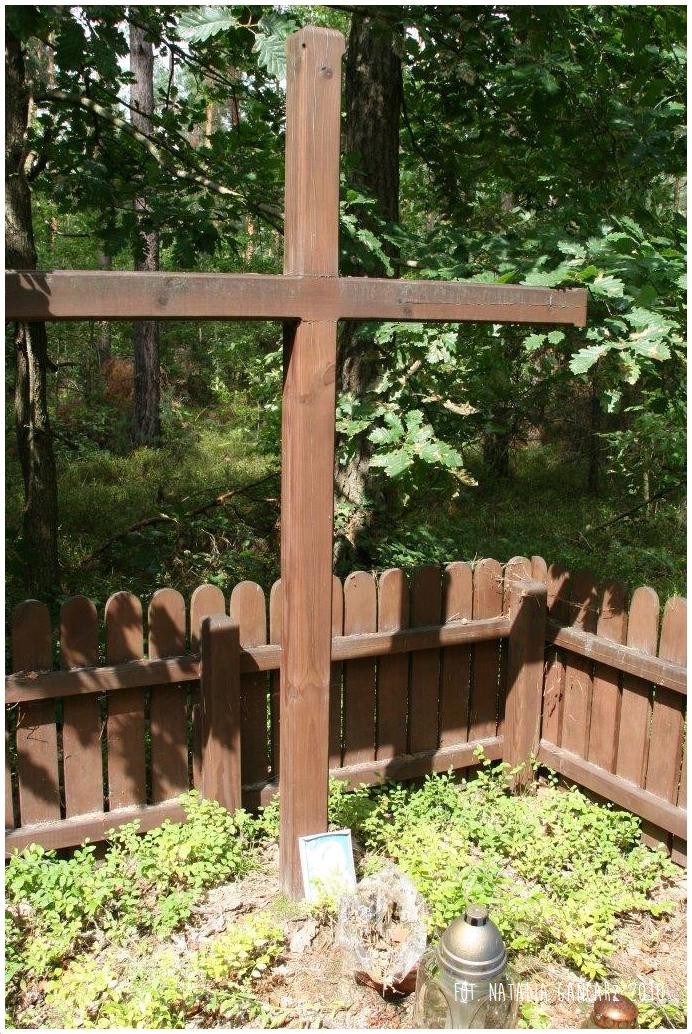 Na skraju polany znajduje się niewielka mogiła, otoczona drewnianym płotkiem. Stoi na niej drewniany krzyż.